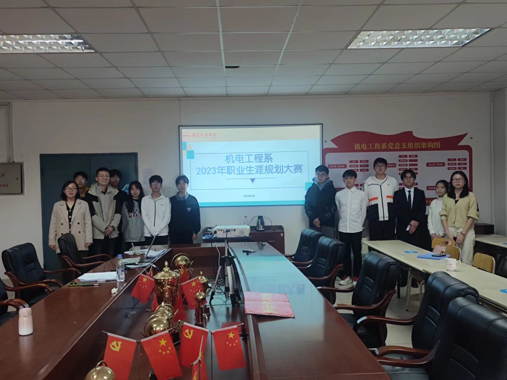 4月1日,机电工程系在工程院417会议室举办2023年职业生涯规划大赛系级初赛,经前期作品初筛,共有9件作品入选初赛现场,《大学生职业生涯规划》授课老师孔靖宇、杨瑞、吴欣担任评委,机电工程系党总支书记朱根松、副主任肖志华到场指导。