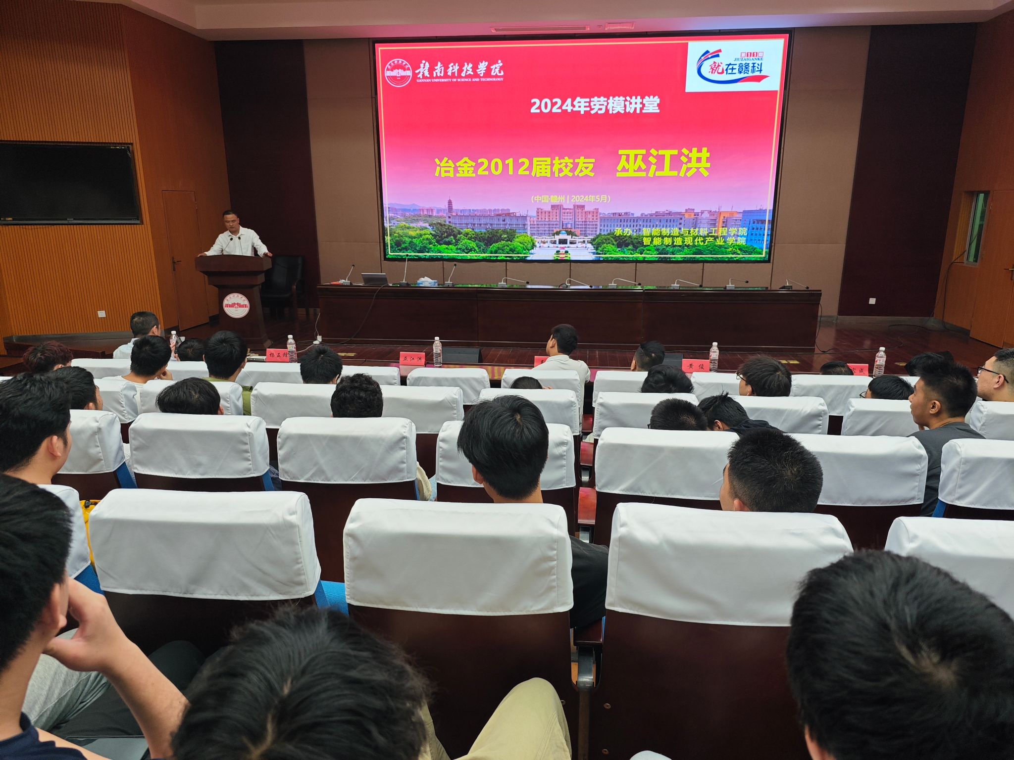 5月4日,全国五一劳动奖章获得者巫江洪校友2024年劳模讲堂,学院行政负责人刘辉出席,师生代表近200人现场聆听。讲座由刘辉主持。