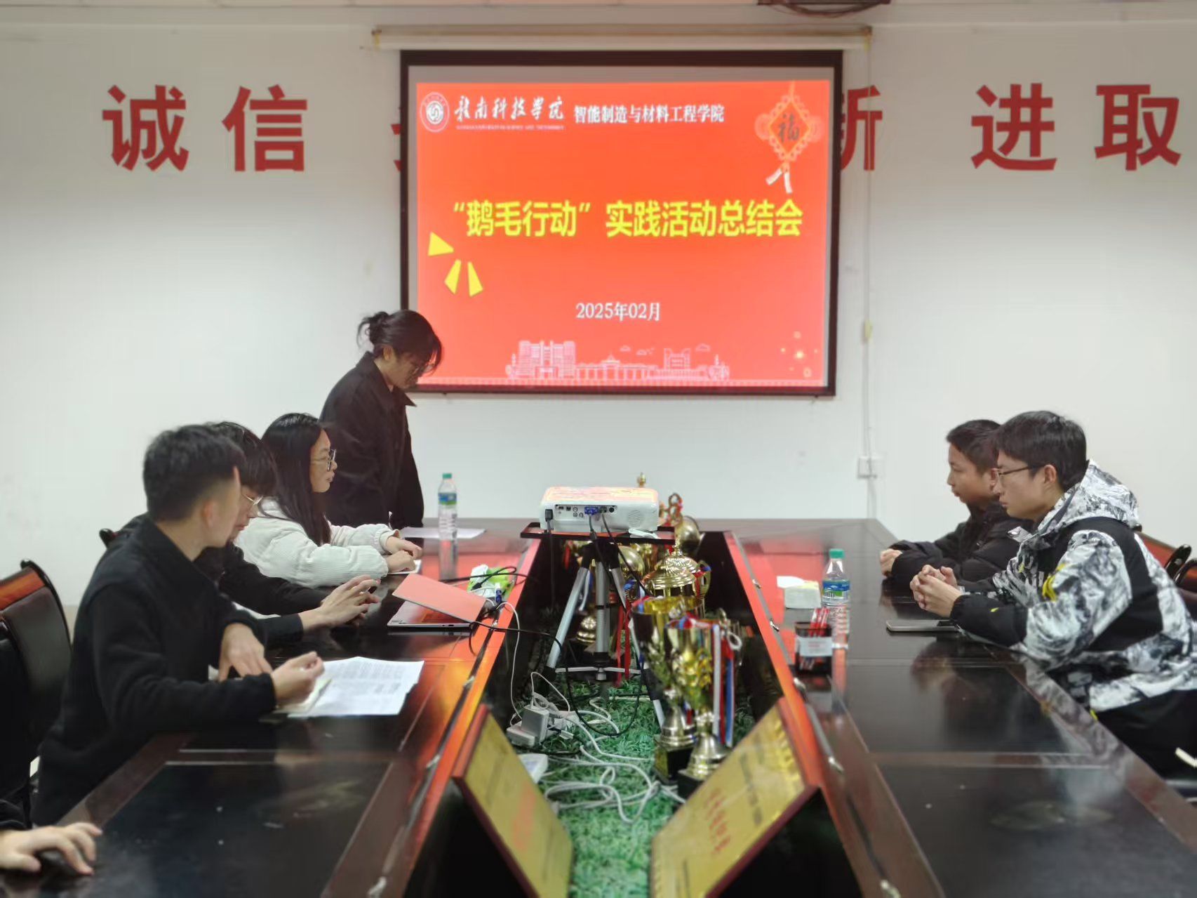 随后,活动进入团队总结分享环节。智造学院的“鹅毛行动”团队代表蔡子依同学详细介绍了活动的前期筹备与实施过程。她提到,在行动前期,学院老师充分发挥能动性,提前与拟采访校友取得联系,搭建沟通的初步桥梁。志愿者们在接受集中培训后,依据家庭所在地和校友所在地进行精准匹配对接,高效安排寻访日程,确保活动顺利开展。在寻访过程中,志愿者们与校友们进行了深入交流,不仅了解了校友们的工作与生活,还收获了他们对母校的深情祝福与对学弟学妹们的殷切寄语。