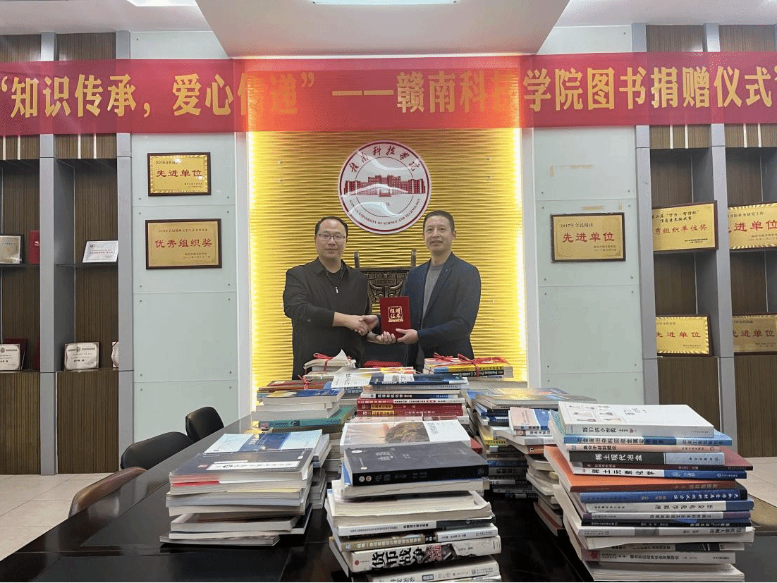本网讯:为响应“同心关爱赣科,共建书香校园——图书捐赠活动”,2023年11月21日星期二下午16:30分,机电工程系在校图书馆会议室举行“知识传承,爱心传递”--beat365平台官方网站图书捐赠仪式活动。
