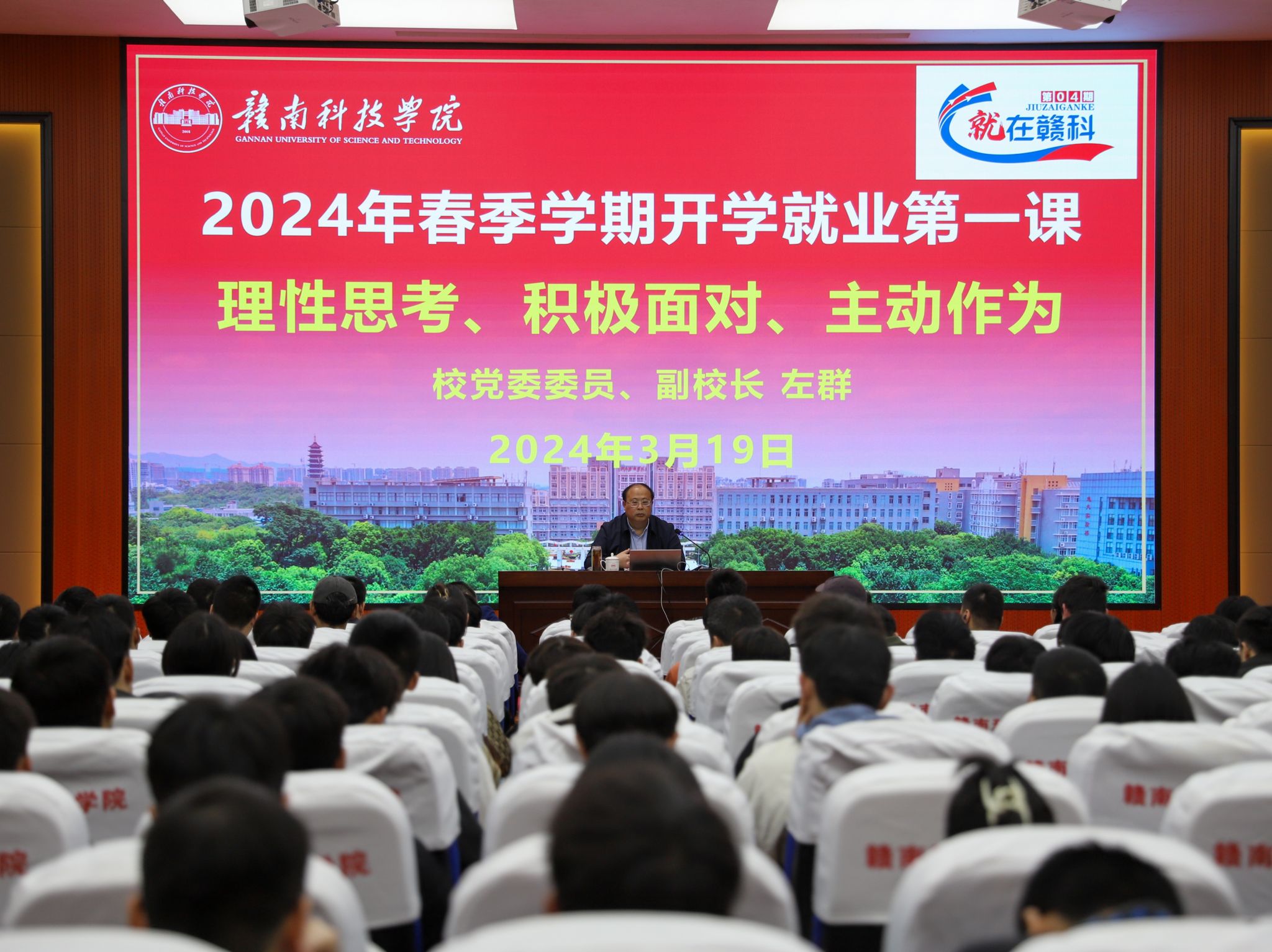 本网讯:3月19日下午,学校党委委员、副校长左群在图书馆学术报告厅为beat365平台官方网站师生讲授2024年春季学期“开学就业第一课”暨就在赣科”就业育人大讲坛第四讲,智造学院班子成员、全体辅导员及学生代表共同聆听。讲座由朱根松主持。
