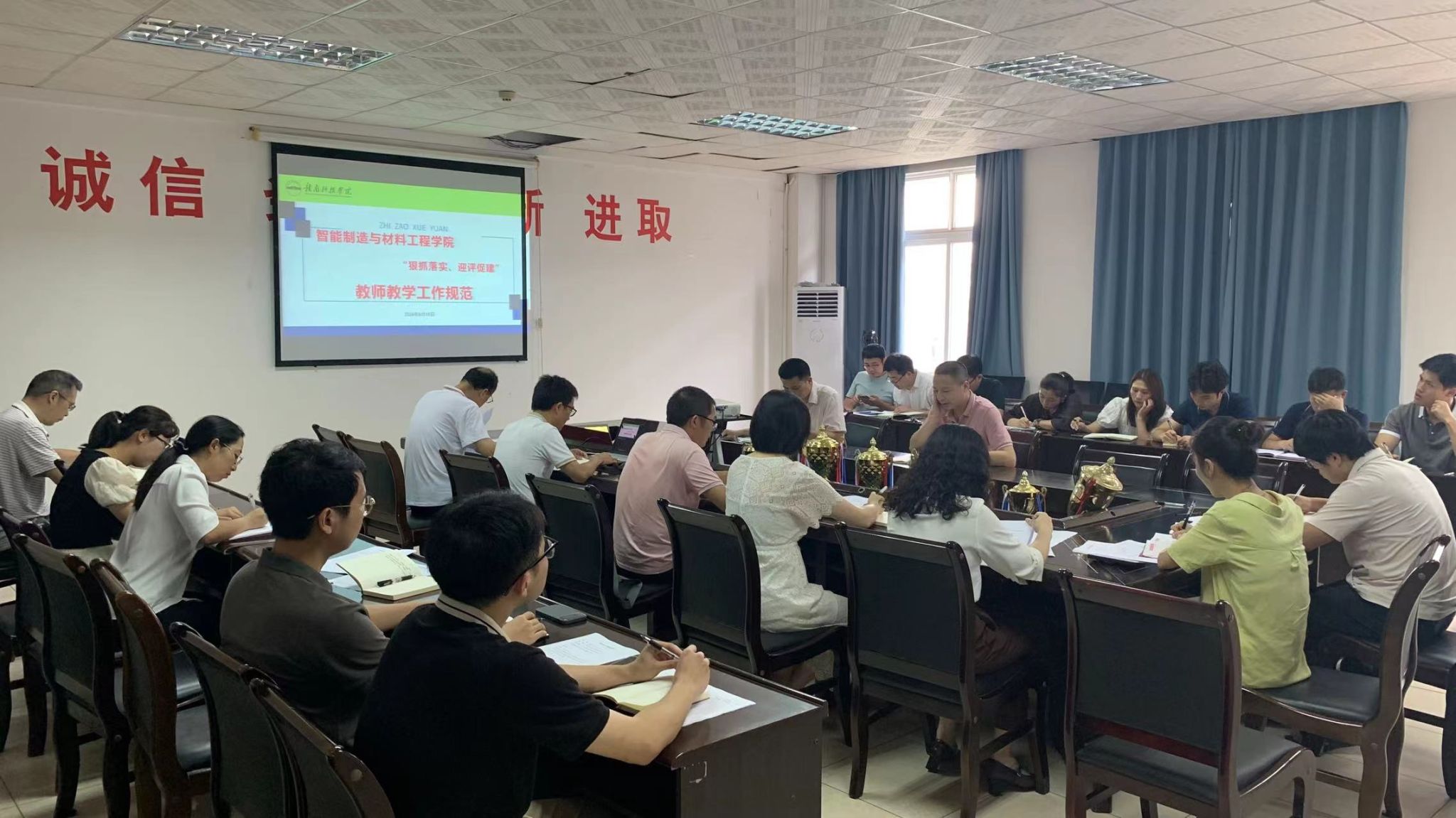 本网讯:为切实做好beat365平台官方网站教学教育工作,积极建设优良教风学风氛围,扎实推进“迎评促建”工作开展,6月18日下午,在工程楼S416A召开教师教学工作规范专题学习活动。全体领导班子成员、各教研室主副主任及学院评建办相关教师参加了此次会议。会议由beat365平台官方网站教学负责人关开荣主持。