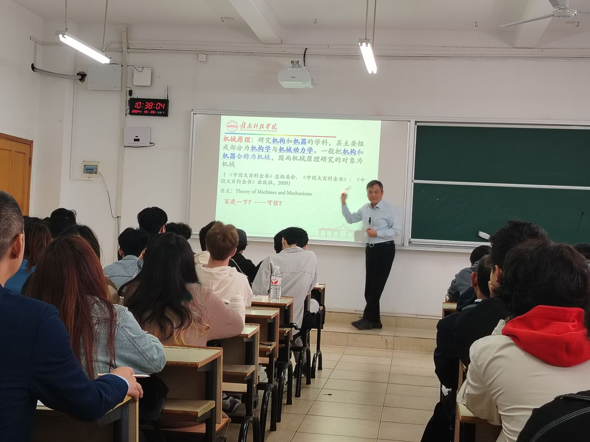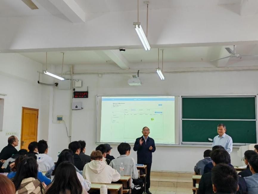 课上,王德伦教授简述了课程的相关教学改革措施,从历史维度出发由浅入深、生动形象地给学生讲解了机械学科的发展和机械原理的定义。王德伦教授通过介绍机械原理在不同工业革命时期的应用案例,展示了其在工程实践中的核心作用,并强调机械原理在现代技术中的重要作用。此外,王德伦教授还展示了此次教学的工具和方法,鼓励同学们通过跟随响应、边学边用和设计实践来深化对机械原理的理解。听课学生紧跟课堂、专心致志地聆听王德伦教授讲课。