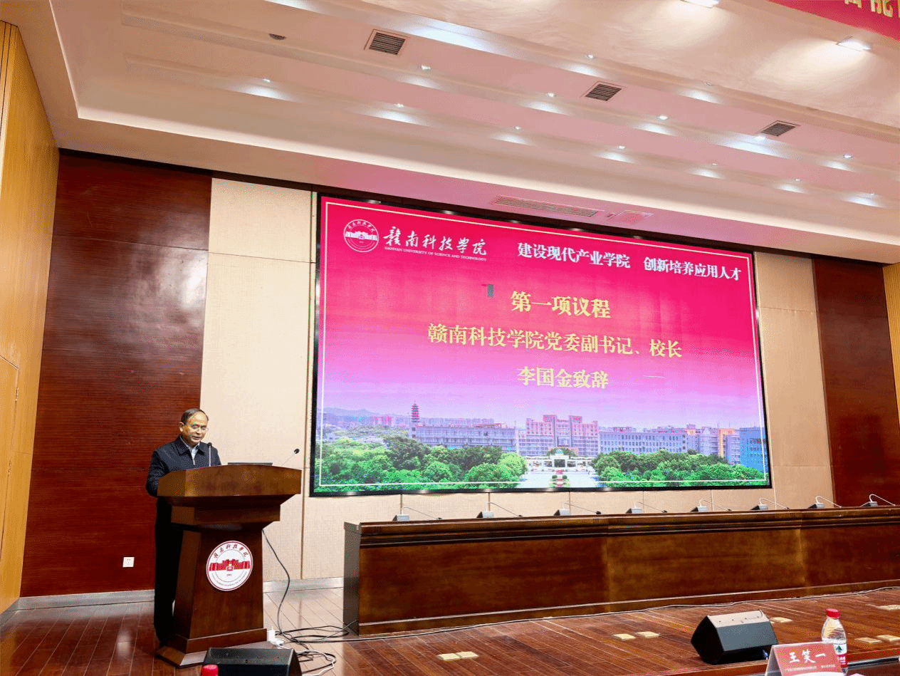 李国金致开幕词,石照耀发表讲话,左群代表学校主持会议。