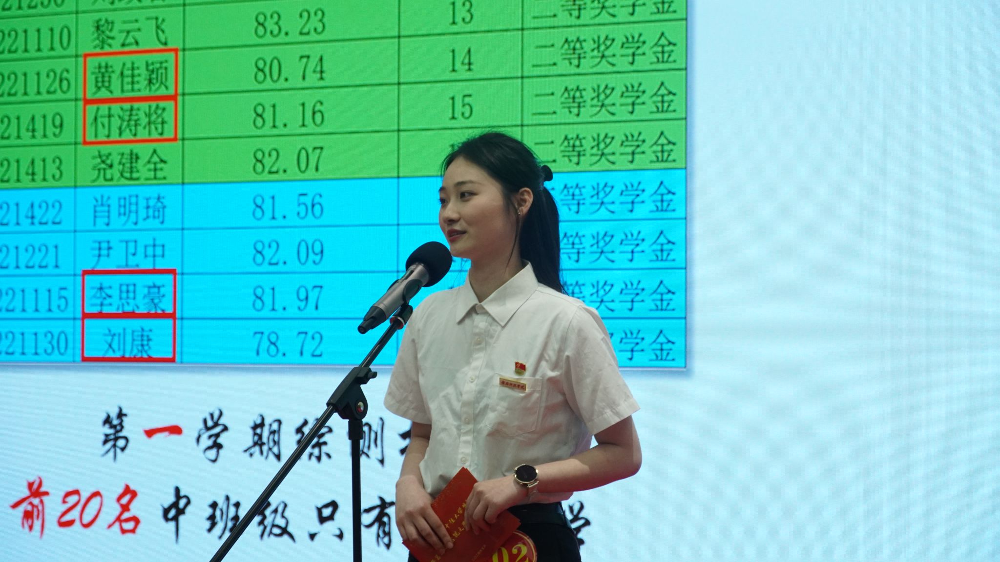 随后,2024年年度“十佳大学生”荣誉获得者黄佳颖同学为台下同学做分享。她认为“1万小时”的锤炼是任何人从平凡变成卓越的必要条件,她向学弟学妹们分享了大学四年的学习经验和充实生活,引导他们学会学习,珍惜大学的美好时光。