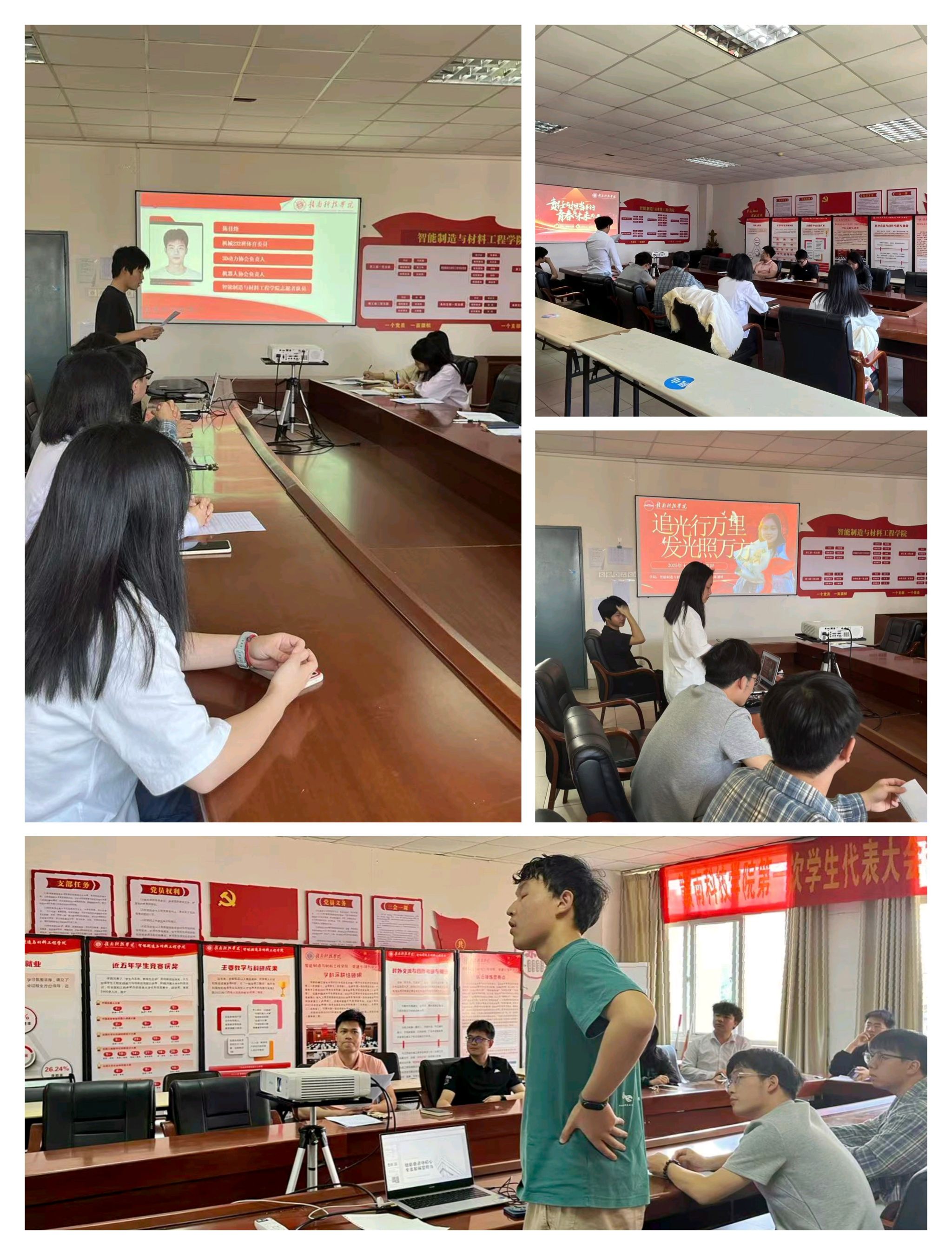 本网讯:为选拔在学业、科研、社会实践等方面表现卓越的优秀学生,发挥榜样的示范引领作用,激励广大同学积极进取、全面发展,4月15日,beat365平台官方网站评审小组在工程院S417A会议室召开2025年第十三届“十佳大学生”初评答辩会,学院党委委员肖志华、相关辅导员和参评学生出席本次会议。