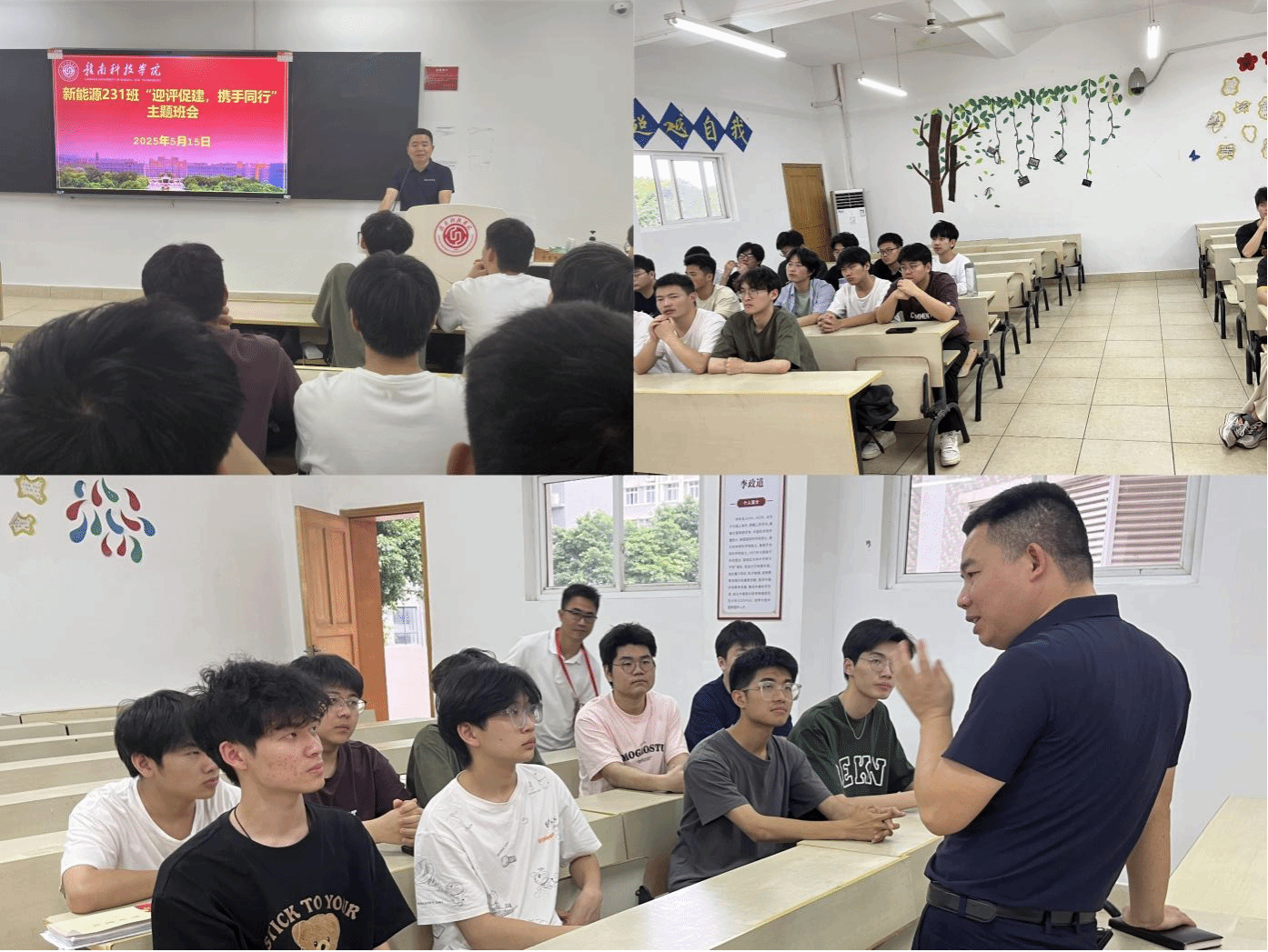 辅导员和班主任就学习学业、劳动教育、生命教育、宿舍管理等内容与同学们深入交流。班会结束后,杨智勇还召集班级学生干部进一步交流,希望班干部发挥模范带头作用,主动学习评估知识,带领同学遵守纪律,优化学风,凝聚班级力量,以高度责任感组织参与评估活动,为学校迎评贡献集体智慧。