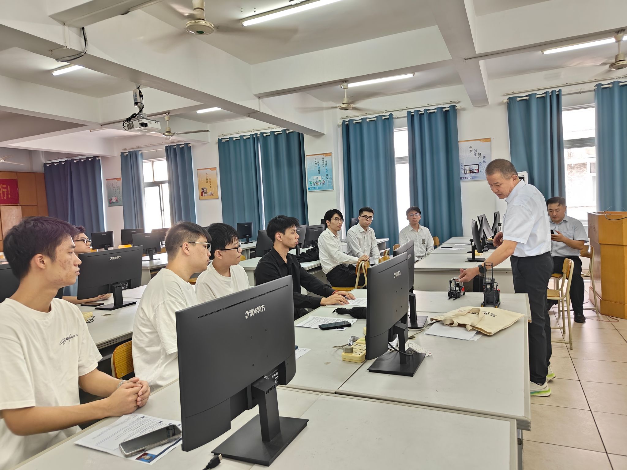 参观结束后,企业面向机器人特色班学生开展实习生招聘面试。汪海波总经理首先进行企业宣讲,详细介绍了叉车智能制造生产线运维、机器人系统集成等岗位的技术要求与职业发展路径。随后,9名学生依次参加面试,企业通过专业技能提问与项目场景模拟,全面评估学生的实践能力与岗位适配度。面试环节结束后,企业方表示将择优录用并定制化设计实习培养方案。