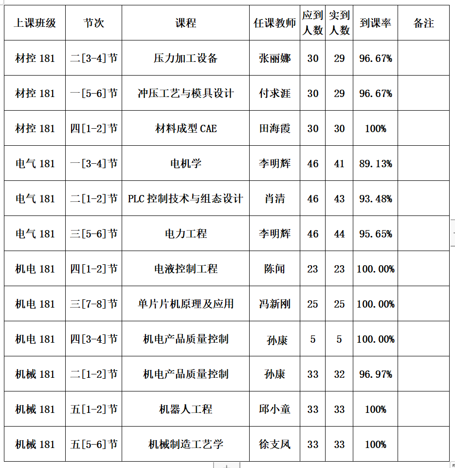 1、18级各班到课率情况通报