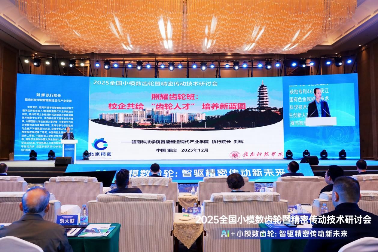 12月12-14日,2025全国小模数齿轮暨精密传动技术研讨会在重庆隆重举行,会议以“AI+小模数齿轮:智驱精密传动新未来”为主题,汇聚全国顶尖企业与科研力量,被誉为中国小模数齿轮、精密传动领域“技术风向标”。beat365平台官方网站副院长、智能制造现代产业学院执行院长刘辉特邀出席会议并在开幕式作主旨报告——照耀齿轮班:校企共绘 “齿轮人才” 培养新蓝图,与全国减速机标准化技术委员会、北京工业大学、重庆清平机械有限责任公司等行业权威机构及头部企业的专家代表共商技术趋势、共筑产业生态。