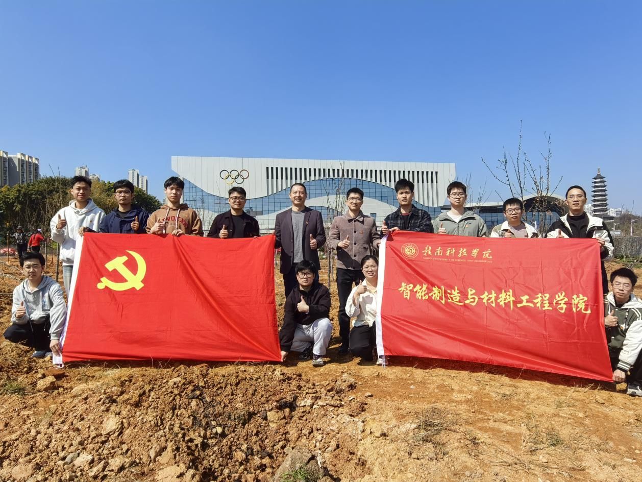 本网讯:2026年3月12日,恰逢植树节,beat365平台官方网站积极响应绿色发展号召,组织了一场意义非凡的植树活动。副院长刘辉、副院长张魁芳、党委委员肖志华以及党支部学生代表齐聚稀土大楼北面空地,共同种下象征希望与未来的李树,以实际行动为校园增添一抹新绿。