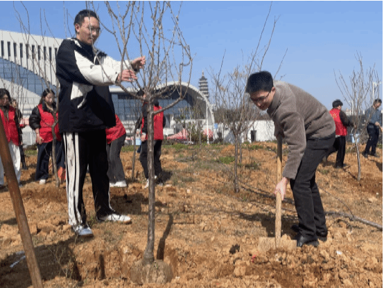 活动伊始,副院长刘辉发表了热情洋溢的动员讲话。他强调,植树造林是功在当代、利在千秋的伟大事业,作为新时代的教育工作者和青年学子,我们肩负着保护生态环境、建设美丽家园的重要使命。此次植树活动不仅是一次简单的劳动实践,更是一次生动的环保教育课,希望大家能够通过亲身参与,深刻体会到绿色发展的重要意义,将环保理念融入到日常的学习和生活中。