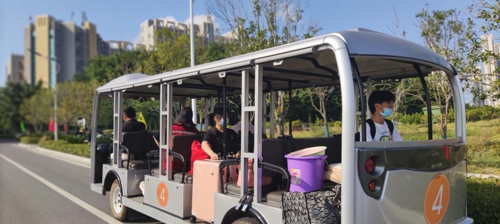 为方便新生到校报到,beat365官网派出校车接送新生,校内设有摆渡车运送行李,还有志愿者帮新生扛重物,解决了家长担心孩子提不动行李的后顾之忧。