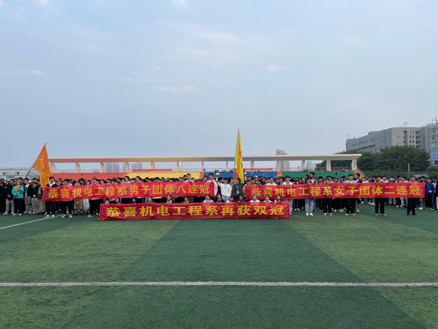 本网讯:2021年10月29至30日,beat365平台官方网站(江西理工大学应用科学学院)第十九届运动会隆重举行。在本次运动会,机电工程系再创佳绩,男子团体蝉联八连冠,女子团体成功卫冕,荣获二连冠,男女团体再获双冠!
