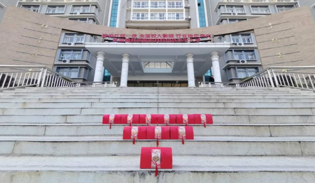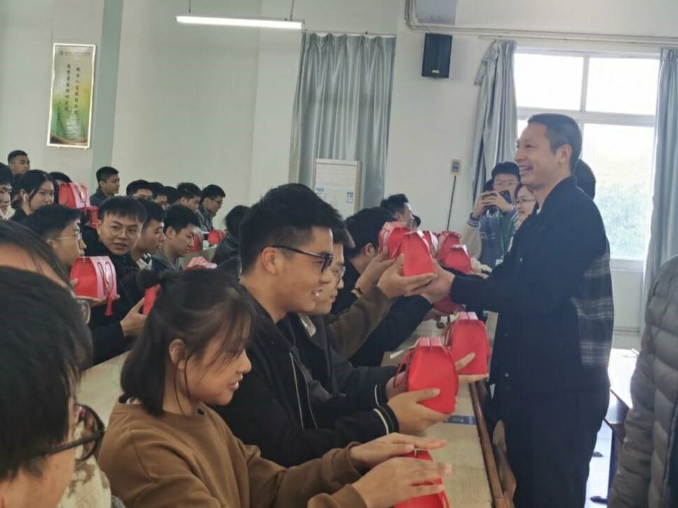 在会议结尾,老师们给考研同学们送来祝福,为每位考研学生赠送脐橙小礼盒,寓意“研”途送橙意,考研指定“橙”,每个礼盒都心意满满。为了给考研同学们送上这份惊喜,老师和学弟学妹们精心筹备,老师们精心挑选脐橙,学弟学妹们准备精美包装,院、系领导及机电系全体教师执笔为每一位考研学子写下衷心祝福。“天道酬勤,水滴石穿,十二月,我们一‘研’为定,一战‘橙’名!”