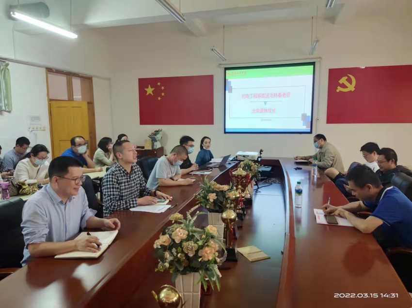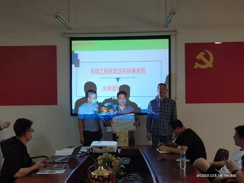 本网讯(刘书祯):3月15日,机电工程系在党员活动室Z820举办了一场教师退休仪式,全系教师暖心欢送冶金工程教研室退休教师——毛林春副教授。