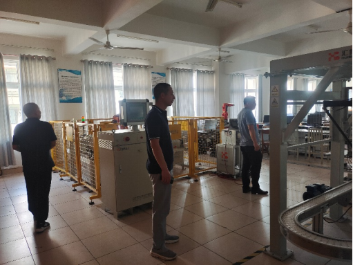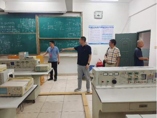 本网讯:暑期将至,针对实验室可能存在的安全隐患,机电系主任刘辉、副主任关开荣、机电系实训中心主任钟涛生与实训中心管理人员等一行人,在6月27日下午对实验室进行了安全检查。