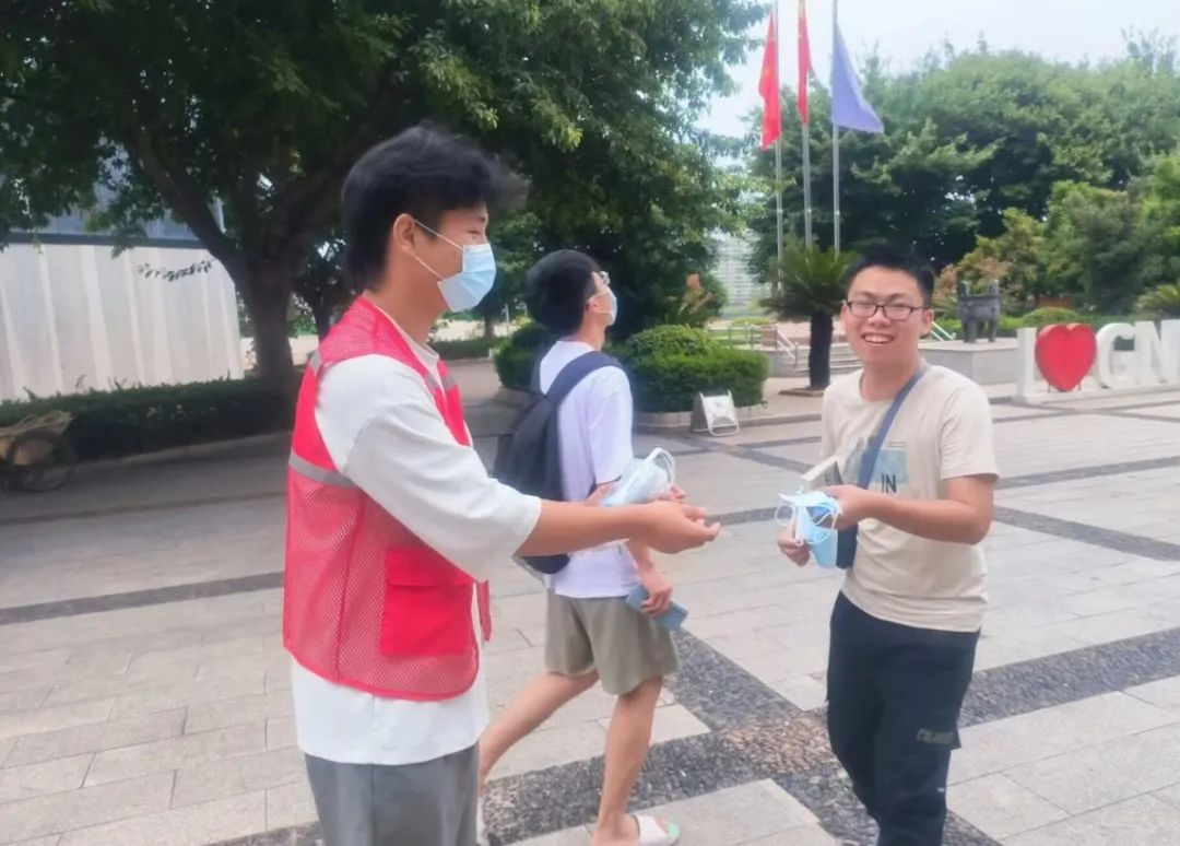 本网讯:机电工程系团总支、学生会权益服务部于9月21日在学校学生群体中开展了“我为同学做件事”主题志愿活动,志愿者在在组织人员的带领下前往主教楼及食堂门口,为忘记携带口罩的同学送上口罩,提醒同学们要时刻注意疫情防控的要求,积极配合学校的防疫措施。