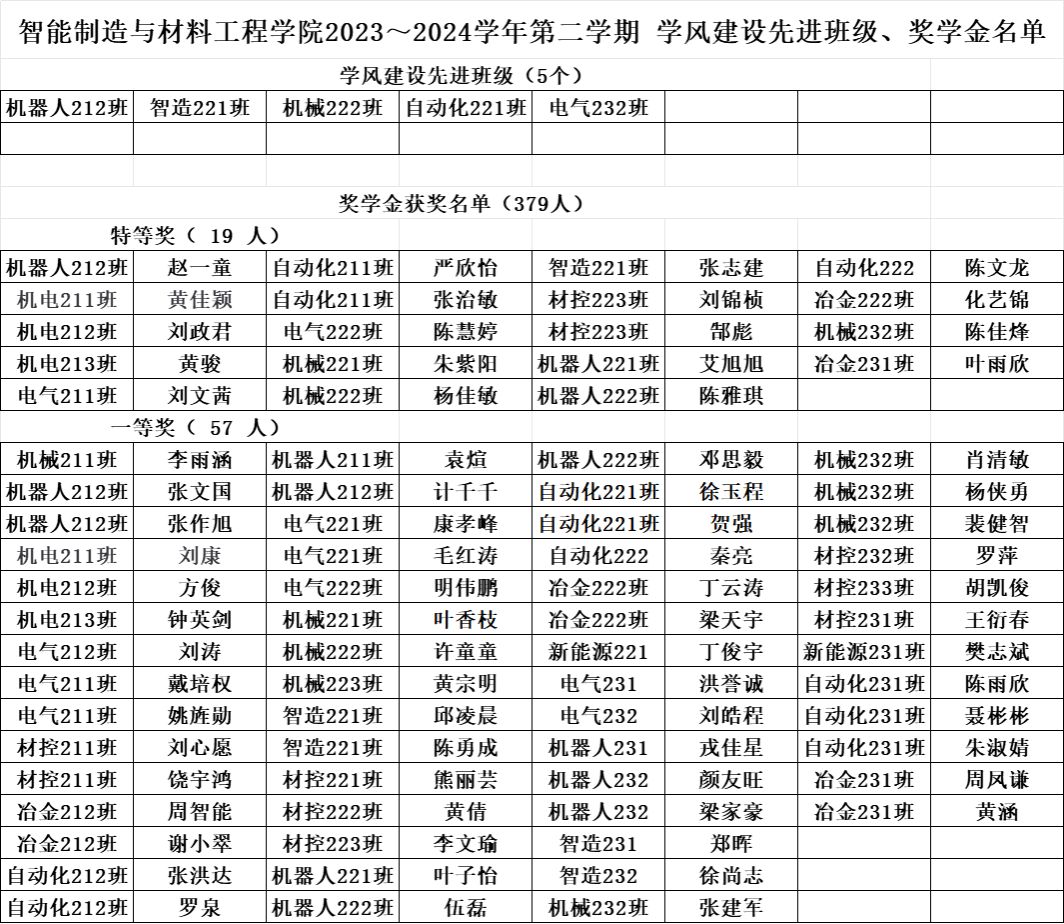 根据学校《关于做好2023-2024学年第二学期学生综合素质测评及学生综合奖学金评定工作的通知》文件要求,按照《beat365平台官方网站学生综合素质测评评定补充细则》有关规定,经学生本人申请、班级认定评议小组评议、学院认定评审领导小组审定,拟确定机器人212等5个班级获得学风建设先进班级称号,赵一童等379名学生获得综合奖学金。现予以公示,公示期为:2024年10月22日到10月24日,公示三天。如有异议,请在公示期内与学院反映。