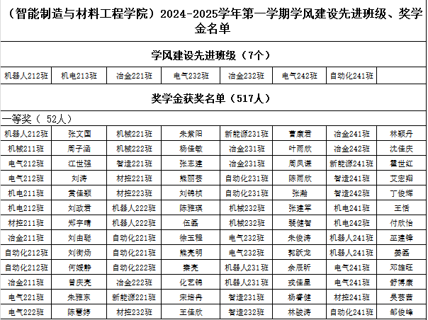 本网讯:根据学校《关于做好2024-2025学年第一学期学生综合素质测评及学生综合奖学金评定工作的通知》文件要求,按照《beat365平台官方网站学风建设先进班级实施办法细则补充(试行)》和《beat365平台官方网站学生综合素质测评评定补充细则(试行)》有关规定,经学生本人申请、班级认定评议小组评议、学院认定评审领导小组审定,拟确定机器人212等7个班级获得学风建设先进班级称号,张文国等517名学生获得综合奖学金。现予以公示,公示期为:2025年3月19日到3月21日,公示三天。如有异议,请在公示期内与学院反映。(附件:beat365平台官方网站2024-2025学年第一学期学风建设先进班级和奖学金汇总表)