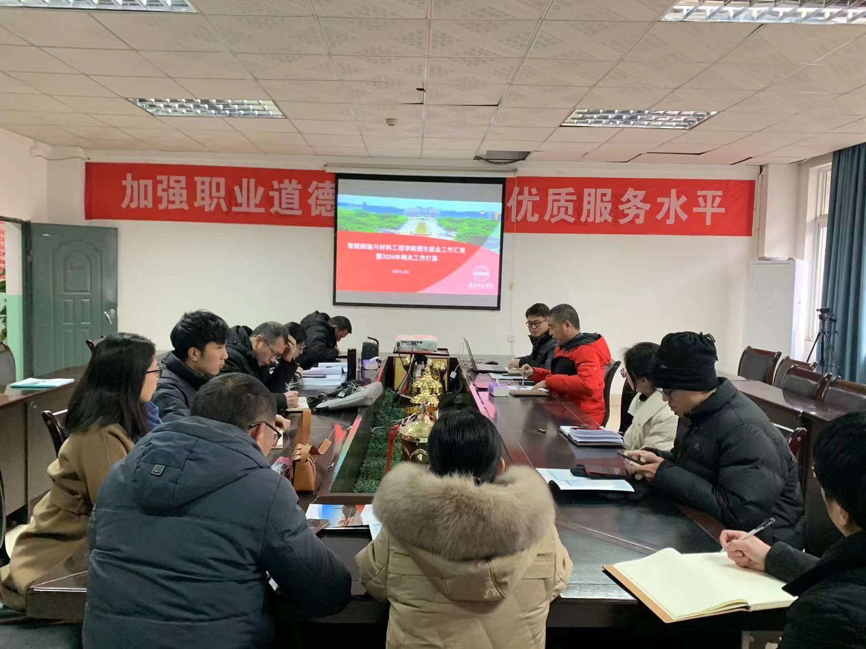 会上,朱根松同志首先导领学习习近平总书记关于就业相关讲话和指示;他表示,2023届就业大局稳定,学院就业去向落实率与学校目标虽有点差距,但总体趋于稳定,就业质量进一步提高。他指出,2024届就业形势严峻复杂,希望各位老师广泛挖掘就业岗位和机会,用足用好政策性岗位,做好未落实学生分类指导和一对一精准帮扶,推动2024届毕业生更充分更高质量就业。