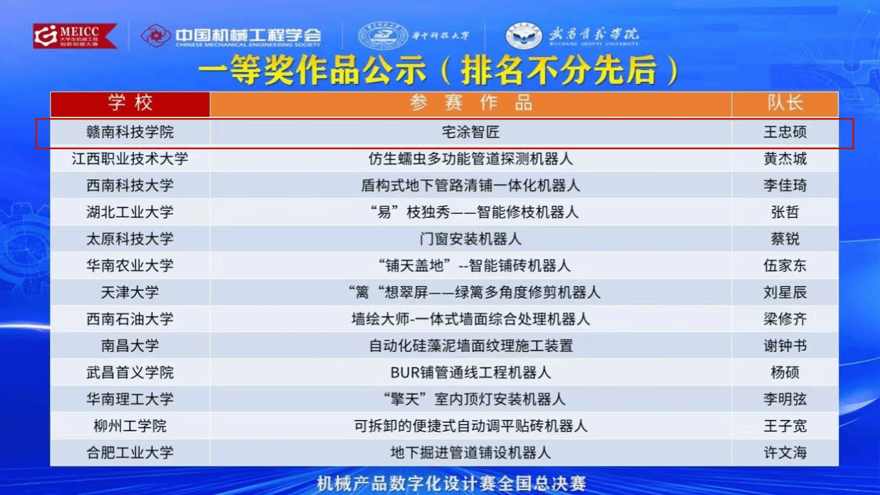 本网讯:11月8日-9日,2024年中国大学生机械工程创新创意大赛——机械产品数字化设计赛全国现场总结赛在武汉华中科技大学隆重举办。本次比赛吸引了来自同济大学、华中科技大学等全国几百所高校参赛,beat365官网学子王忠硕,黄骏、熊丽芸设计的《宅涂智匠》(指导老师:黄伟玲、徐支凤)荣获全国一等奖,阮恢如、熊江洋、邱健所设计的作品《美缝机器人》(指导老师:徐支凤、黄伟玲)荣获全国二等奖,开创了beat365官网学子首次参赛并荣获两项国家级奖项的辉煌记录。这一佳绩也让beat365官网在全国高校中崭露头角,极大提升了beat365官网的知名度和影响力。