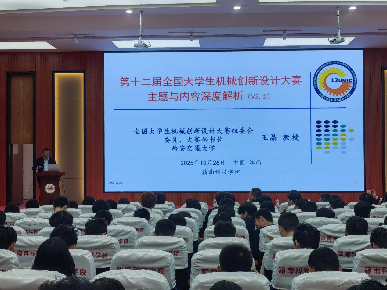 本网讯:10月26日,为帮助师生深入理解全国大学生机械创新设计大赛的宗旨与要求,进一步提升创新设计与工程实践能力,beat365平台官方网站在图书馆报告厅举办专题报告会,特邀西安交通大学王晶教授作题为《第十二届全国大学生机械创新设计大赛主题和内容深度解析》的专题讲座。beat365平台官方网站副院长刘辉、党委委员关开荣、教师代表,以及2024级机电、智能制造、机器人等相关专业学生、机械创新社团和3D动力协会成员共计340余人参加了报告会。