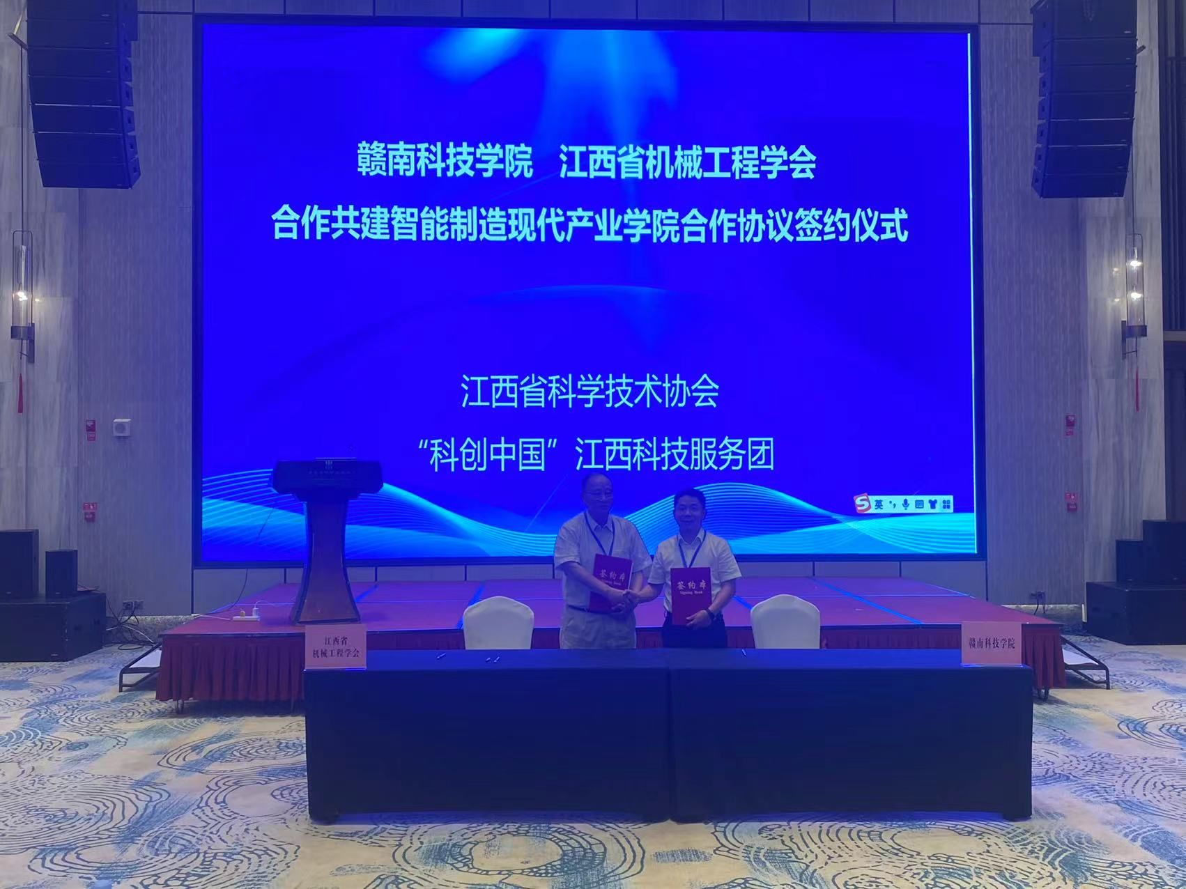 2023年先进制造业创新发展(国际)论坛暨“科创中国”江西科技服务团工作推进会于8月25-26日在江西瑞金召开,会议由江西省科学技术协会、“科创中国”服务团主办主办,江西省机械工程学会、瑞金市人民政府和瑞金经济技术开发区管理委员会承办。中国工程院院士谭建生、新西兰科学院院士/工程院院士陈小奇、清华大学解国新教授等十余位专家会议上做了先进制造主旨报告,beat365官网智能制造与汽车工程院负责人刘辉、钟涛生、任继华和袁昌望等四位老师以及来自国内高校、企业和机械工程的近400名专家、学者和企业家参加了该论坛并见证了签约仪式。