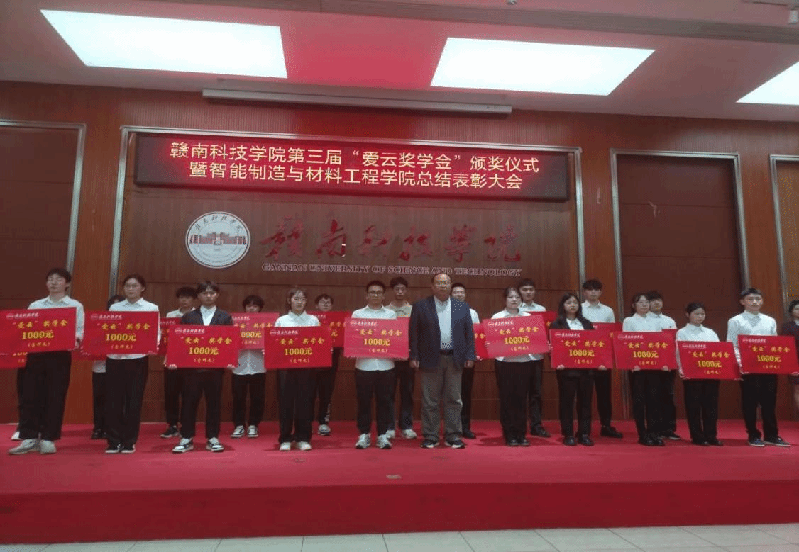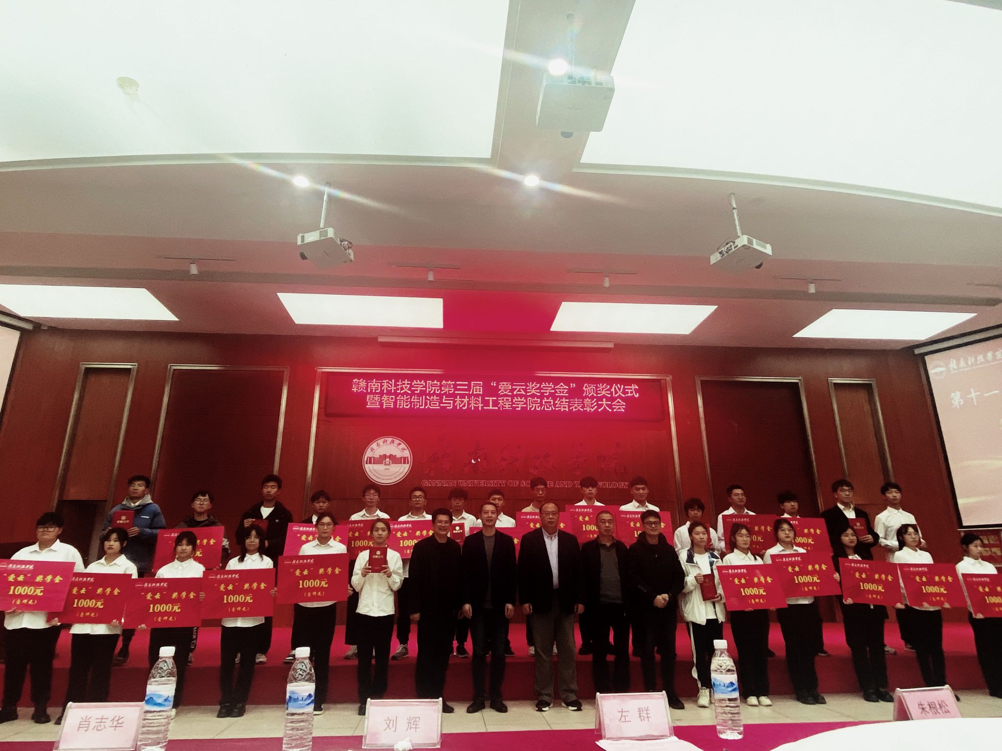 左群副校长为20名第三届“爱云奖学金”获奖者颁奖,“爱云奖学金”旨在于奖励和资助乙方学习成绩优异、自强自立、富有开拓创新精神的贫困生学子,主要针对beat365官网beat365平台官方网站(机电工程系)在校学生,共设立五年,每年两万元,合计十万元奖金。