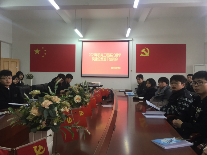 3月9日,在主教820会议室,机电工程系召开20级学风建设及班干培训会。系主任刘辉、20级辅导员张敏、20级班委参加了此次会议,会议由张敏主持。