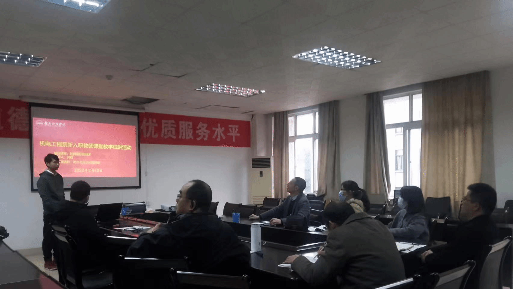 本网讯:为提高新入职教师的上课水平,增强上课自信心、教研室于开课前一周举行了新入职教师的试讲活动。