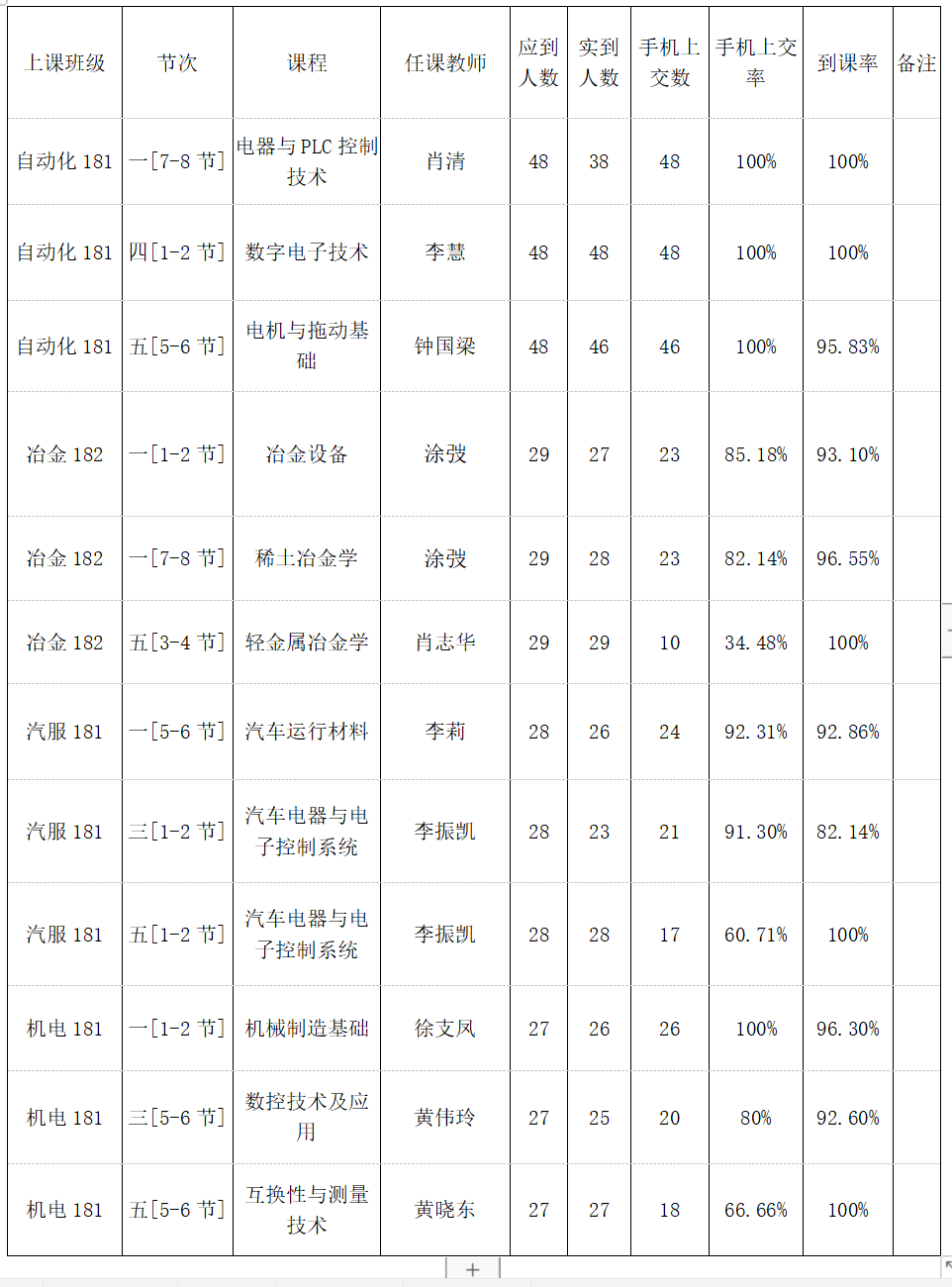 一、十五周抽查到课率情况通