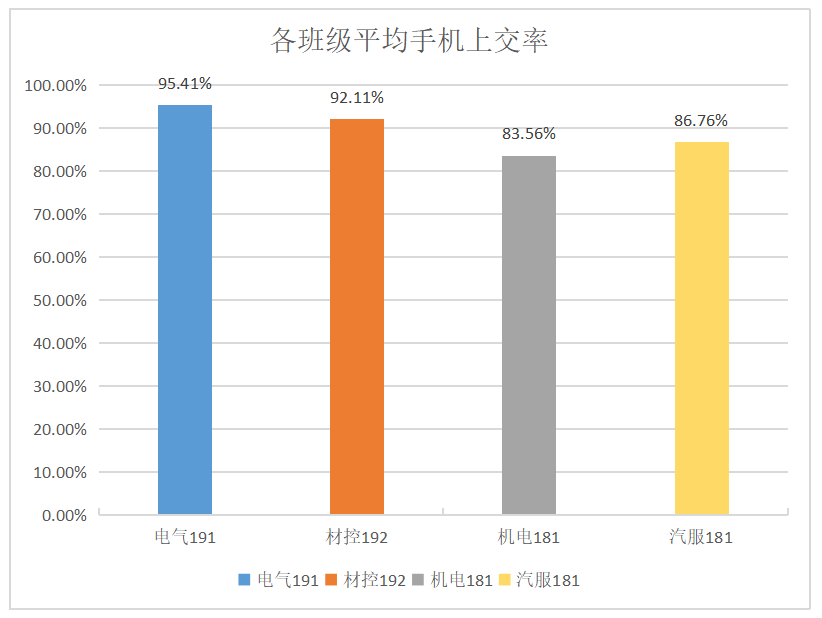 从数据来看,电气191班手机上交率较高,表现良好,希望能够继续保持!