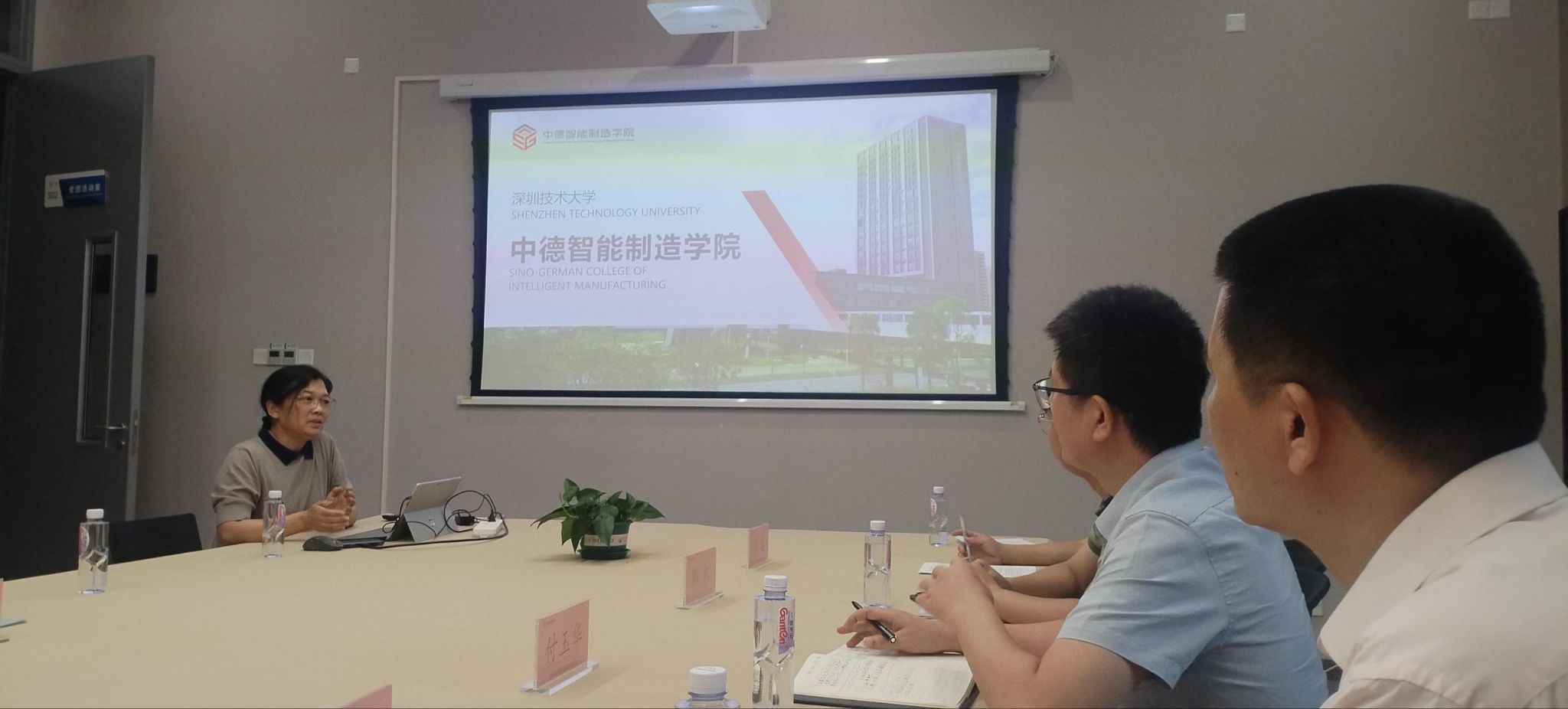 8月5日到深圳技术大学中德智能制造学院,该学院独特的办学理念和鲜明的人才培养特色,让调研成员眼前一亮。在座谈中,中德智能制造学院陈菲副院长详细介绍了学院的发展历程与人才培养定位。中德智能制造学院自成立以来,紧紧围绕国家战略需求和深圳市“20+8”产业集群,借鉴德国技术人才培养的先进经验,既强调专业理论知识的掌握和技能训练,又突出技术研发、创新及应用。学院积极探索产学研用一体化协同育人和协同科创新模式,推动“产业+学科”深度融合,开设校企合作专业与课程、共建实习实训基地、协同创新平台、特色联合实验室等。在专业设置上,紧密围绕深圳市重点发展的智能制造产业,机械设计制造及其自动化、机器人工程等专业均与当地龙头企业建立了深度合作关系,形成了“专业建在产业链上”的鲜明特色。