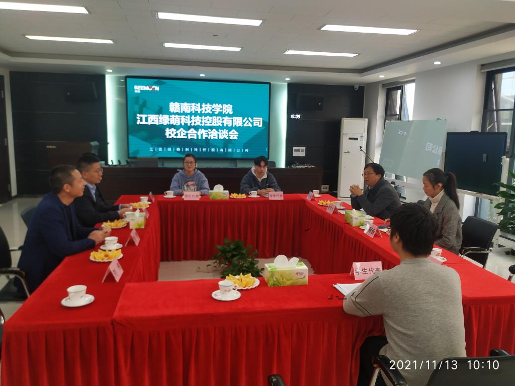 江西绿萌科技控股有限公司热情接待了付玉华一行,公司常务副总经理李宝水、总经办主任肖丽丽、研发部主管刘小彤出席了洽谈会,双方围绕学校培养人才模式,企业留住人才、用好人才展开了热烈的讨论。