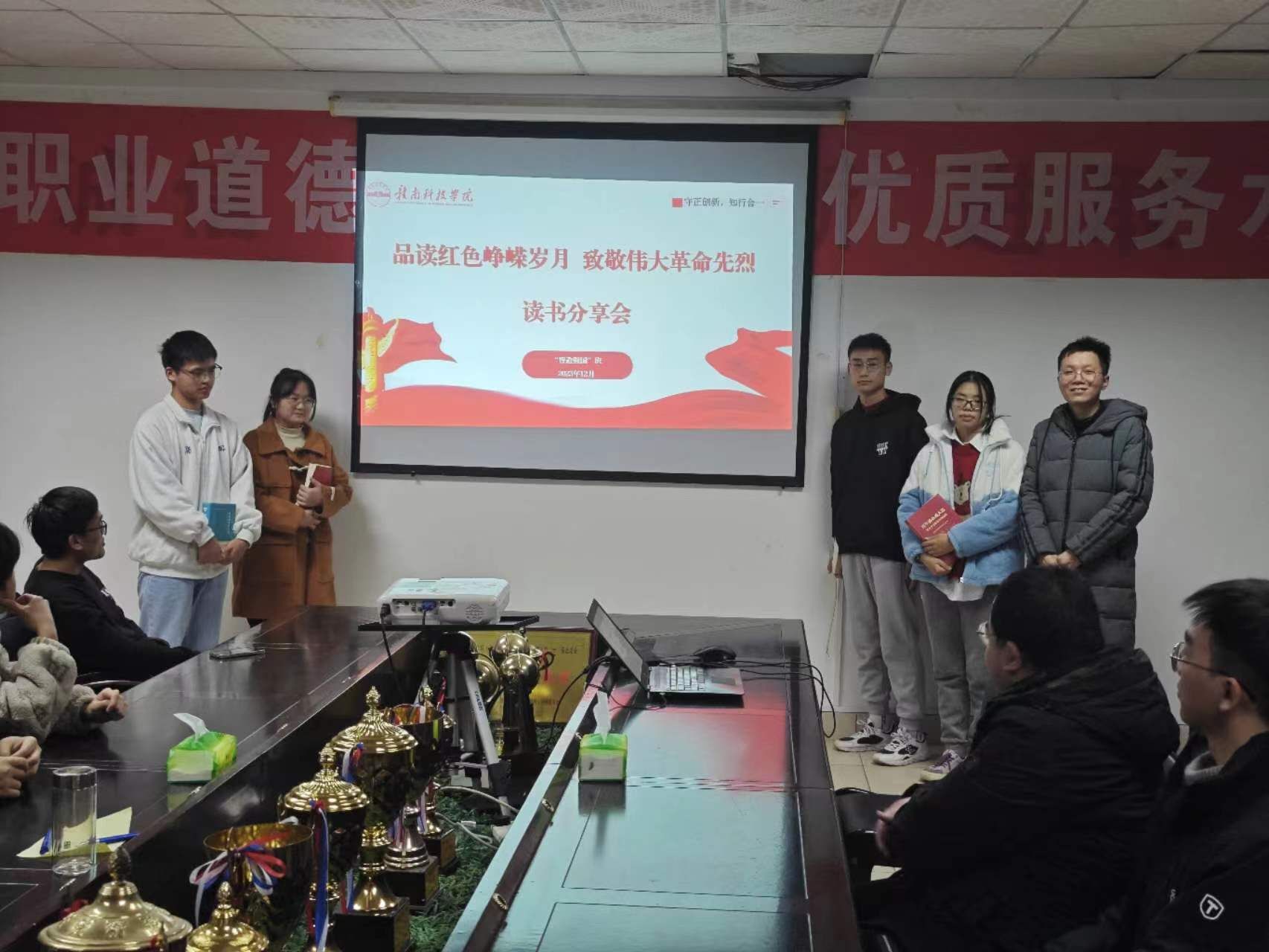 12月17日,校级红色班级“智造强国”班在工程院4楼会议室举行以“品读红色峥嵘岁月 致敬伟大革命先烈”为主题的读书分享会。“智造强国”班班主任老师及全体同学参加活动。